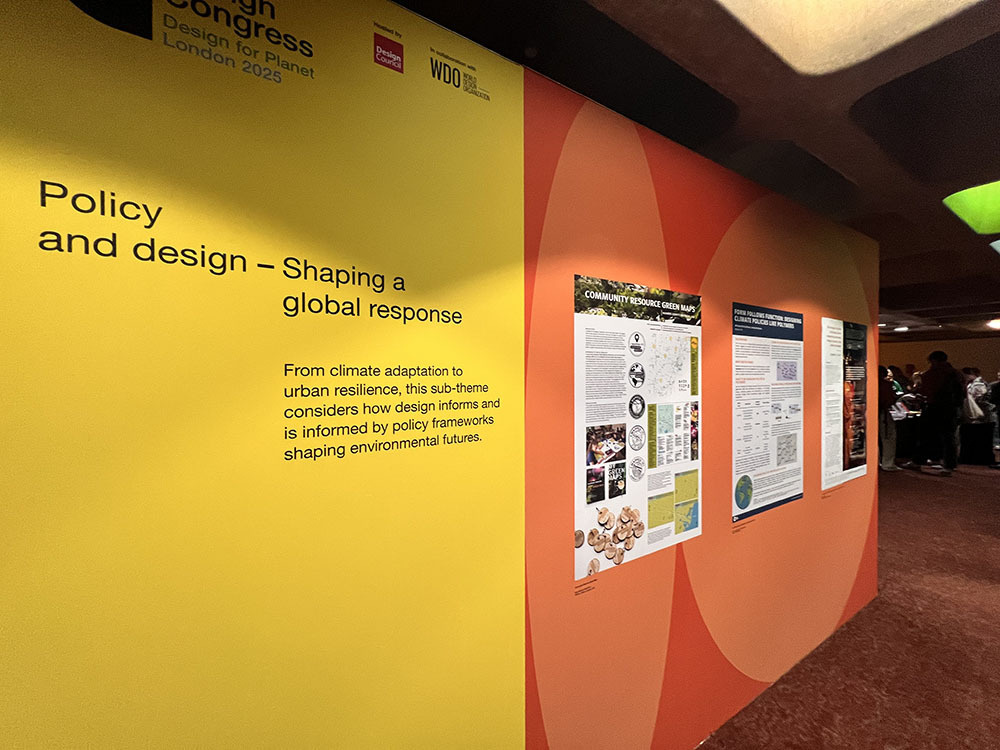 WDCの各ホールでのセッションでは発展途上国でのデザイン実践,特定地域の文化習慣から学ぶアプローチ,完全なサーキュラーエコノミーを作るための材料研究などのが取り上げられ,いずれも次の創造的行為を下支えするドキュメンテーションとしての映像の役割を感じとることができました。また会場ではデザイン経営のプロフェッショナルと話す機会が多く,まだ日本では定着し切れていない同概念の普及・実践を垣間見ることができました。さらにポスター発表は殆どが政策デザインに関するものであり,こちらの分野の浸透度にも驚かされました(写真:左)。政策デザインとも関係しますが,経済分野の専門家がセッションに多く登壇し,サスティナブルな社会実現のために広義のデザイン実践の必要性を訴えていた点も印象的でした。